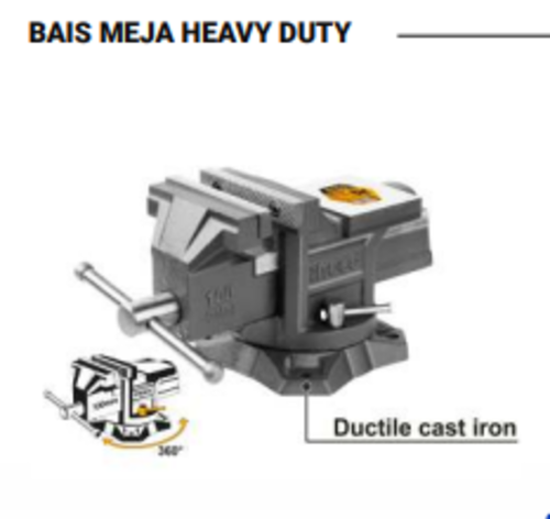 Ketangguhan bodi menjadi nilai tambah utama saat Anda memilih alat dari brand global Ingco Tools. Ragum ini membawa landasan (anvil) kecil di bagian belakang yang mempermudah Anda saat perlu memukul atau meratakan material ringan. Sebagai hasilnya, alat ini multifungsi dan menghemat ruang di meja kerja Anda. Meskipun Anda memberikan torsi tinggi pada tuas pemutar, poros ulir berbahan baja karbon ini tetap bekerja dengan halus dan tidak mudah aus. Terlebih lagi, lapisan cat powder coating melindungi seluruh bodi ragum dari serangan karat dan percikan las. Maka dari itu, bais meja ini sangat cocok untuk penggunaan jangka panjang di lingkungan industri yang kasar. Dengan demikian, Anda memiliki investasi alat bengkel yang andal dan sangat perkasa.