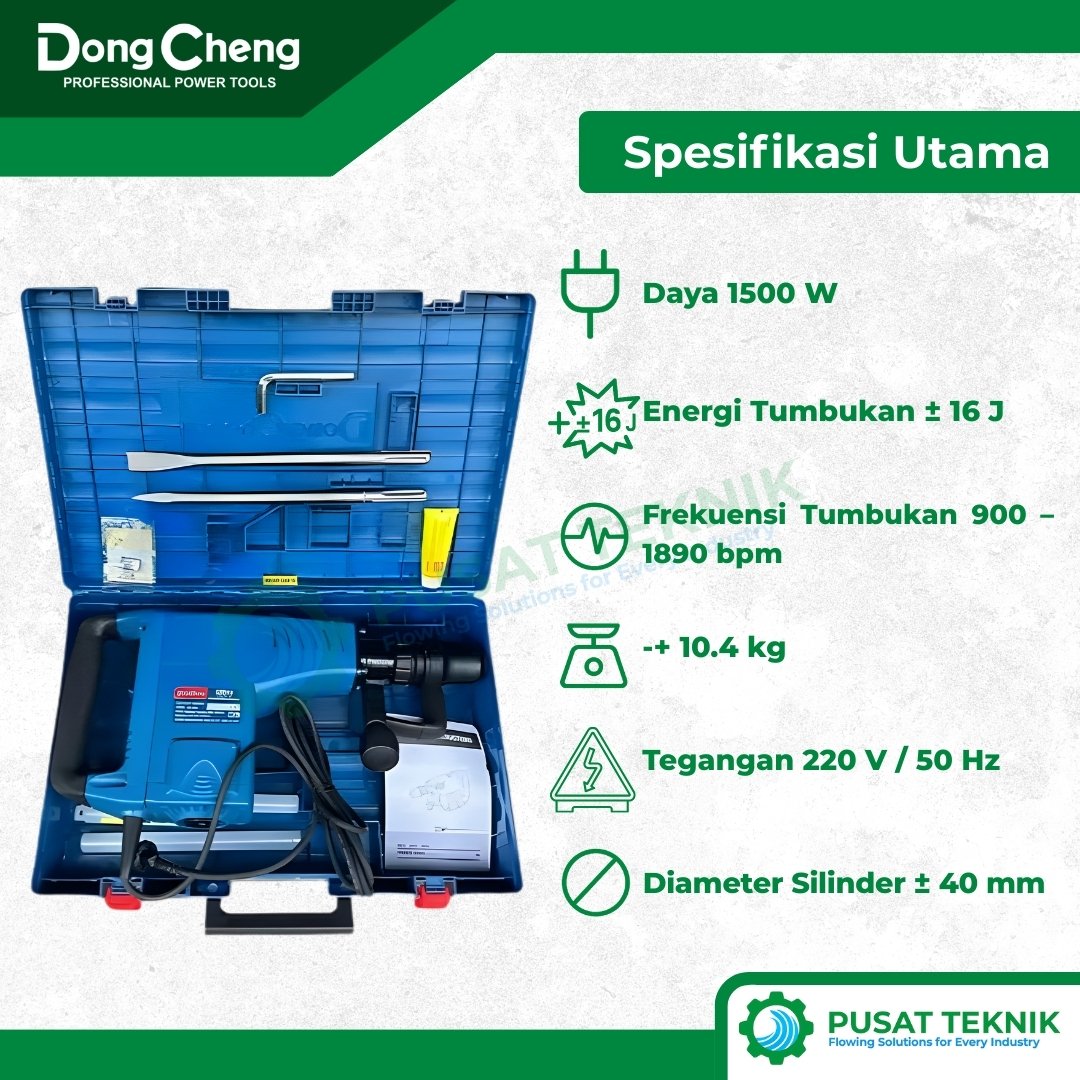 Menyelesaikan proyek pembongkaran menuntut alat yang memiliki daya tahan tinggi dan kekuatan destruksi yang hebat. Oleh karena itu, Dongcheng menghadirkan seri DZG 10 sebagai solusi bagi para kontraktor profesional. Mesin ini memiliki motor bertenaga 1500 Watt yang mampu menghasilkan energi pukul sebesar 16 Joule. Dengan spesifikasi tersebut, Anda dapat menghancurkan permukaan beton yang keras atau membongkar lantai keramik dengan sangat cepat. Dongcheng merancang mesin ini agar tetap stabil meskipun Anda menggunakannya untuk beban kerja berat sepanjang hari.