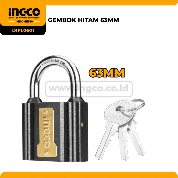 Daya tahan fisik yang luar biasa menjadi nilai tambah utama saat Anda memilih produk dari brand global Ingco Tools. Lapisan warna hitam pada bodi besi ini memberikan pertahanan ganda terhadap kelembapan dan oksidasi udara. Sebagai hasilnya, leher gembok tetap dapat Anda buka dengan lancar meskipun telah terpapar hujan dan sinar matahari dalam waktu lama. Meskipun gembok ini memiliki ukuran yang besar, silinder kuningan di dalamnya memastikan setiap putaran kunci terasa halus dan ringan. Terlebih lagi, setiap unit menyertakan tiga buah anak kunci cadangan yang sangat membantu jika kunci utama hilang secara tidak sengaja. Maka dari itu, gembok ini merupakan solusi investasi keamanan yang sangat awet untuk jangka panjang. Dengan demikian, Anda memiliki perisai pelindung yang tangguh untuk segala jenis pintu dan pagar.