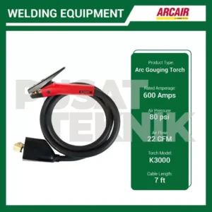 ARCAIR K-3000 adalah stang las jenis arc gouging torch yang dirancang untuk pekerjaan penggerusan (gouging) dan pemotongan logam menggunakan busur listrik serta tekanan udara. Cocok digunakan dalam industri berat, perbaikan las, dan pekerjaan fabrikasi logam skala besar.