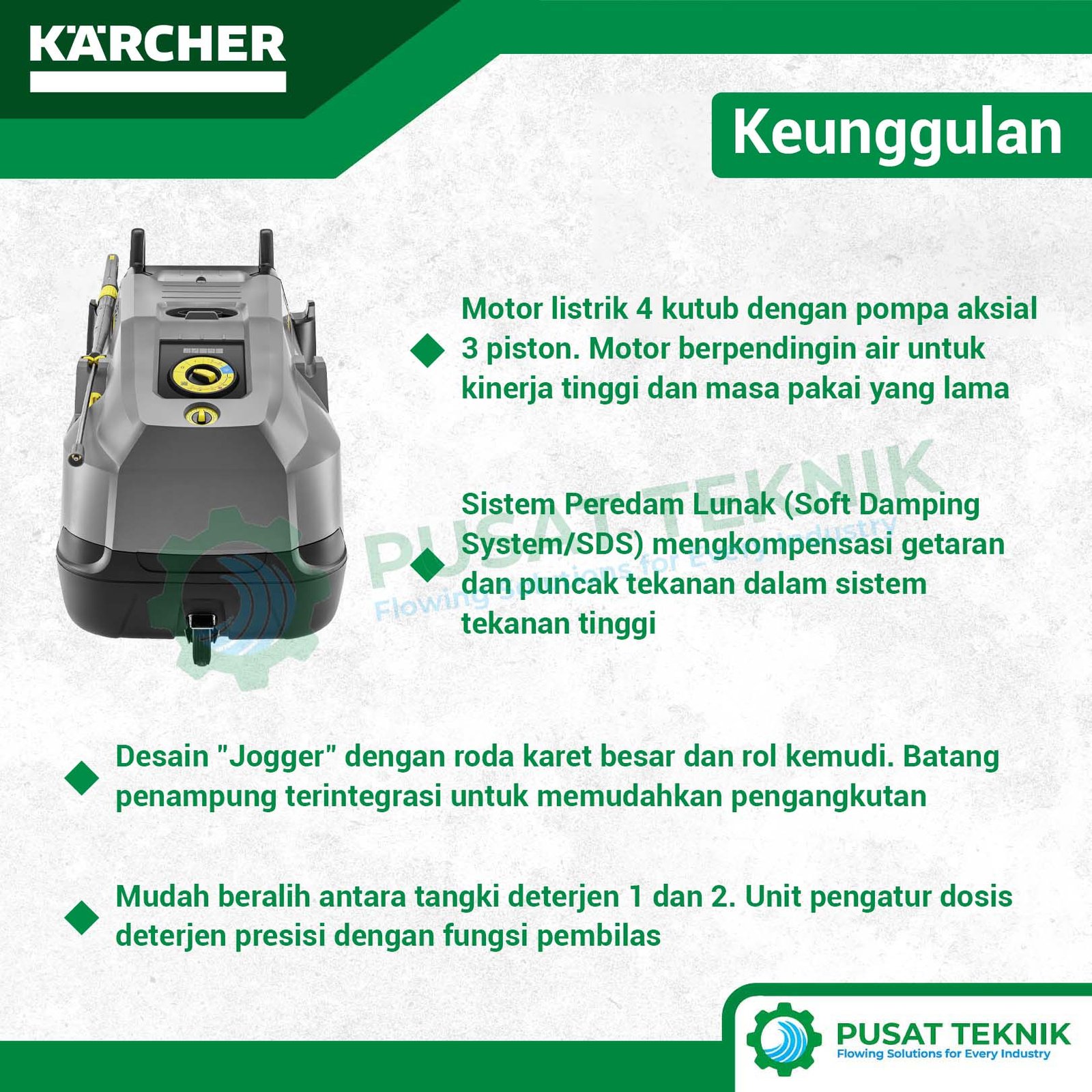 Keunggulan utama dari model ini terletak pada penggunaan motor listrik berkecepatan rendah yang sangat tahan lama serta bertenaga. Oleh karena itu, tingkat keausan mesin menjadi sangat minim sehingga biaya pemeliharaan jangka panjang Anda akan jauh lebih hemat. Selain itu, investasi pada High-pressure cleaner ini sangat menguntungkan karena mode eco!efficiency mampu mengurangi konsumsi bahan bakar hingga 20 persen tanpa mengurangi kekuatan semprotan.