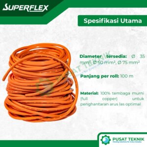 Selanjutnya, keunggulan utama seri ini terletak pada tingkat kelenturannya yang sangat tinggi sesuai dengan nama merknya. Meskipun memiliki diameter tembaga yang tebal, kabel ini tetap fleksibel dan tidak kaku guna memudahkan manuver teknisi di lapangan, bahkan saat bekerja di area yang sulit sekalipun. Sebagai komponen vital dalam ekosistem alat las & pemotong, investasi pada kabel las tembaga berkualitas merupakan langkah tepat untuk menjaga performa mesin las inverter maupun trafo Anda agar tetap awet dan bekerja pada efisiensi puncaknya.