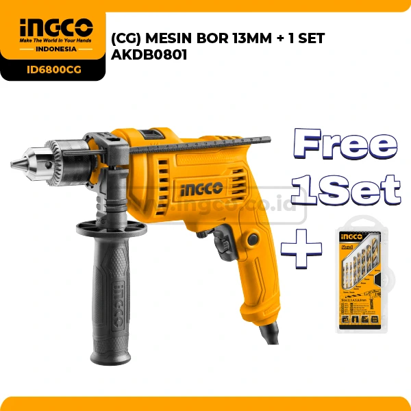 Mesin Bor 13mm Ingco ini menawarkan performa motor yang kuat untuk melubangi beton, besi, dan kayu, lengkap dengan bonus satu set mata bor berkualitas tinggi.