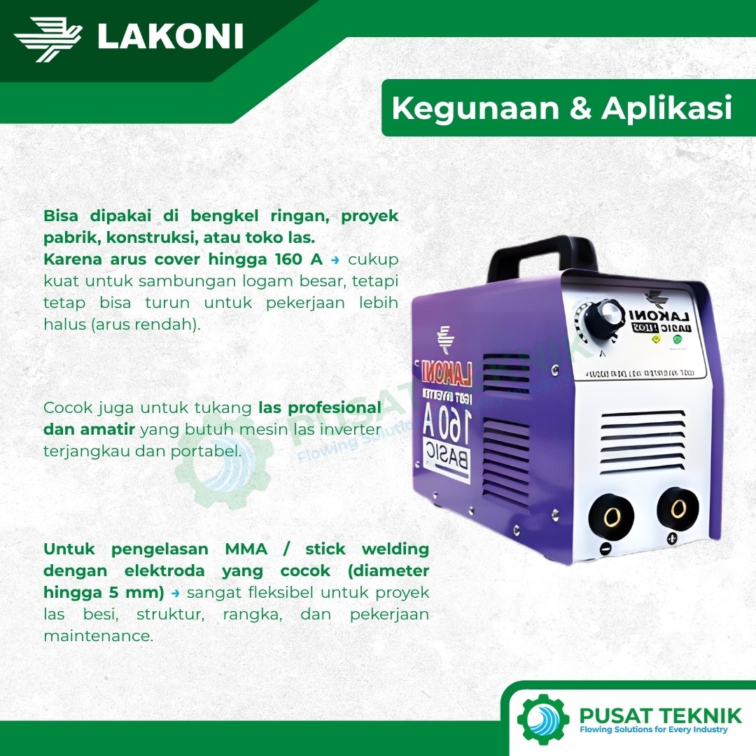 Kebutuhan akan hasil pengelasan yang kuat dan matang sempurna menuntut alat dengan kapasitas arus yang mumpuni. Oleh karena itu, Lakoni menghadirkan seri Basic 162iX sebagai solusi bagi para teknisi yang membutuhkan tenaga ekstra hingga 160 Ampere. Mesin ini mengandalkan teknologi IGBT terbaru untuk menjaga stabilitas arus meskipun Anda gunakan dalam durasi yang panjang. Dengan kapasitas ini, Anda dapat menggunakan kawat las berdiameter hingga 4.0 mm dengan sangat lancar pada berbagai jenis material baja.