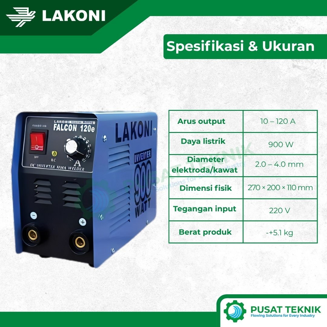 Memilih mesin las yang tepat sangat menentukan produktivitas dan kualitas hasil pengerjaan logam Anda. Oleh karena itu, Lakoni menghadirkan seri Falcon 120E yang sudah terbukti ketangguhannya di ribuan bengkel las seluruh Indonesia. Mesin ini menggunakan teknologi inverter canggih yang mampu menghasilkan arus las stabil meskipun Anda hanya menggunakan daya listrik rumahan sebesar 900 Watt. Dengan kapasitas 120 Ampere, Anda bisa mengerjakan berbagai proyek mulai dari pembuatan pagar, kanopi, hingga furnitur industrial dengan hasil penetrasi yang sangat matang.