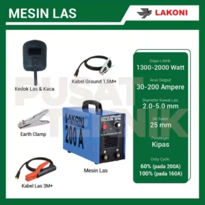 – Arus tinggi hingga 200A, cocok untuk pengelasan tebal