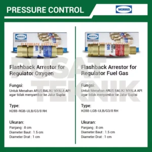 Flashback Arrestor dari MORRIS adalah alat pengaman penting yang dipasang pada regulator gas untuk mencegah terjadinya backfire atau ledakan balik ke sumber gas. Ideal untuk aplikasi pengelasan dan pemotongan dengan gas Oksigen maupun Acetylene.
