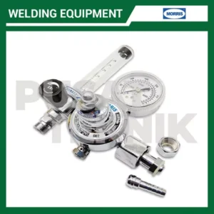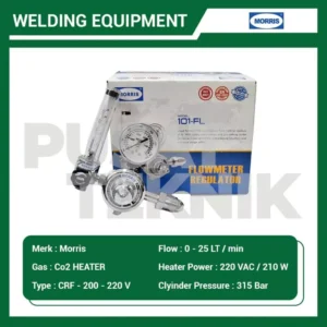 Flowmeter regulator dari MORRIS dengan heater bawaan, dirancang untuk pengaturan aliran gas CO2 yang stabil dan aman, cocok untuk aplikasi pengelasan dan industri.