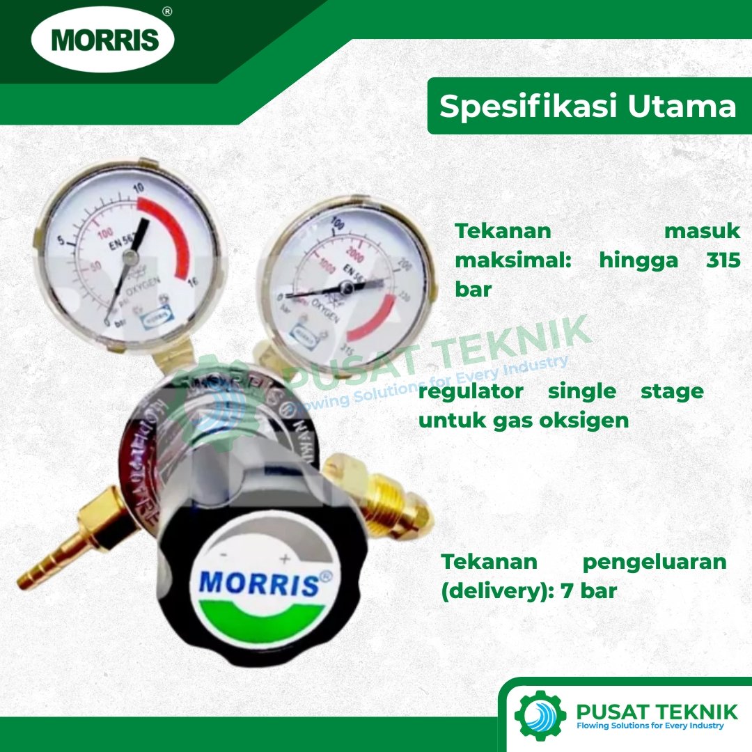 MORRIS 201-7M-OX hadir sebagai regulator oksigen premium yang menawarkan pengaturan aliran gas dengan akurasi sangat tinggi. Dengan mengadopsi desain Harris Style yang legendaris, produk unggulan dari brand Morris ini menjadi pilihan utama para profesional untuk pengerjaan Medium Duty di bidang fabrikasi logam, perbengkelan, hingga konstruksi skala besar. Selain memberikan performa yang konsisten, regulator ini juga memudahkan operator dalam memantau sisa gas di dalam tabung secara real-time.