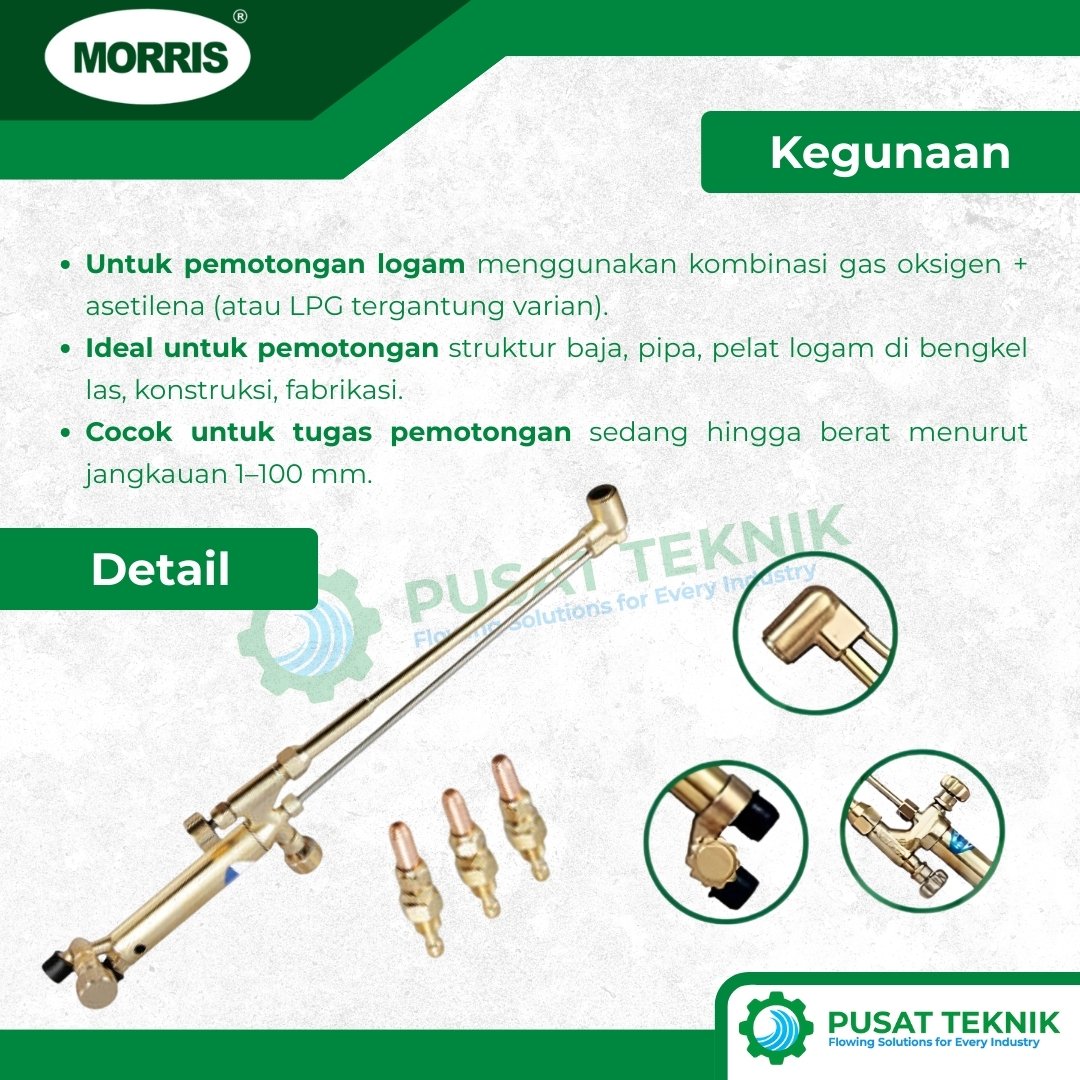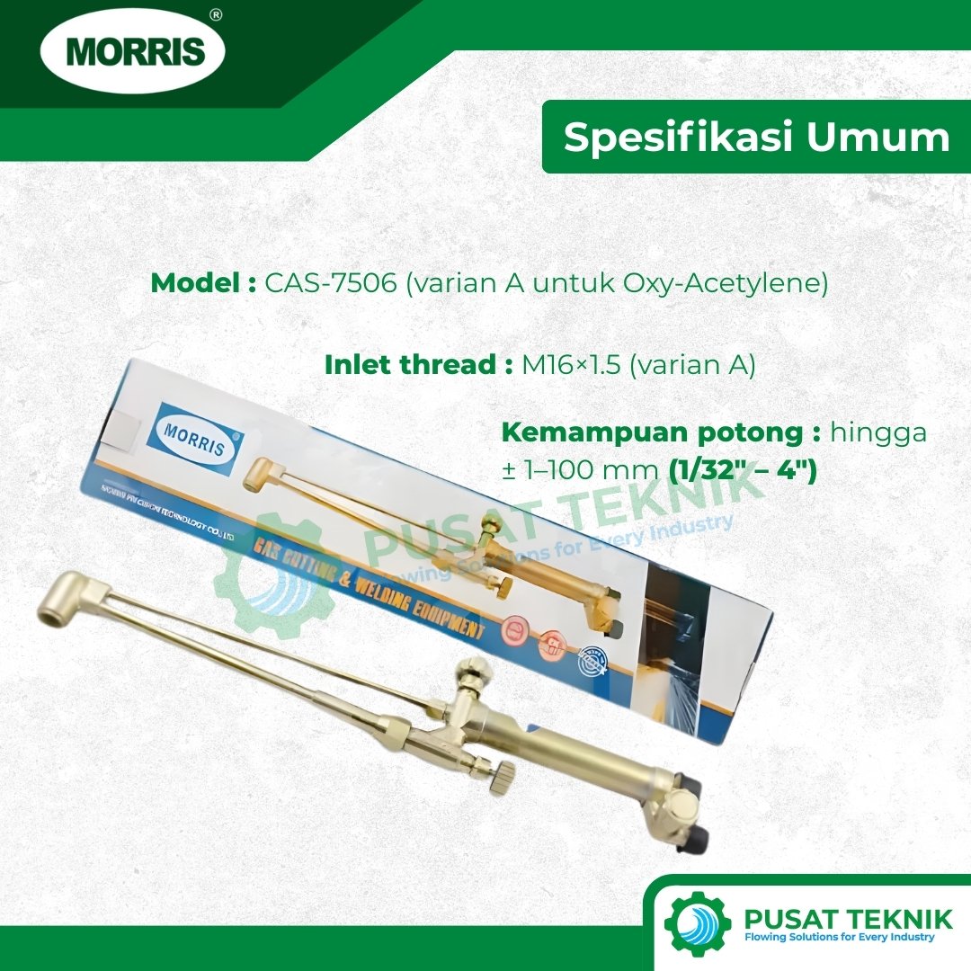 Cutting Torch Morris CAS-7506 adalah blender potong sepanjang 50 cm yang tangguh dan presisi. Mendukung penggunaan gas LPG dan Acetylene, alat model putar ini sangat ideal untuk industri fabrikasi, konstruksi, dan bengkel bubut. Paket sudah termasuk 3 mata potong, memberikan nilai ekonomis dan performa profesional dalam satu kemasan.