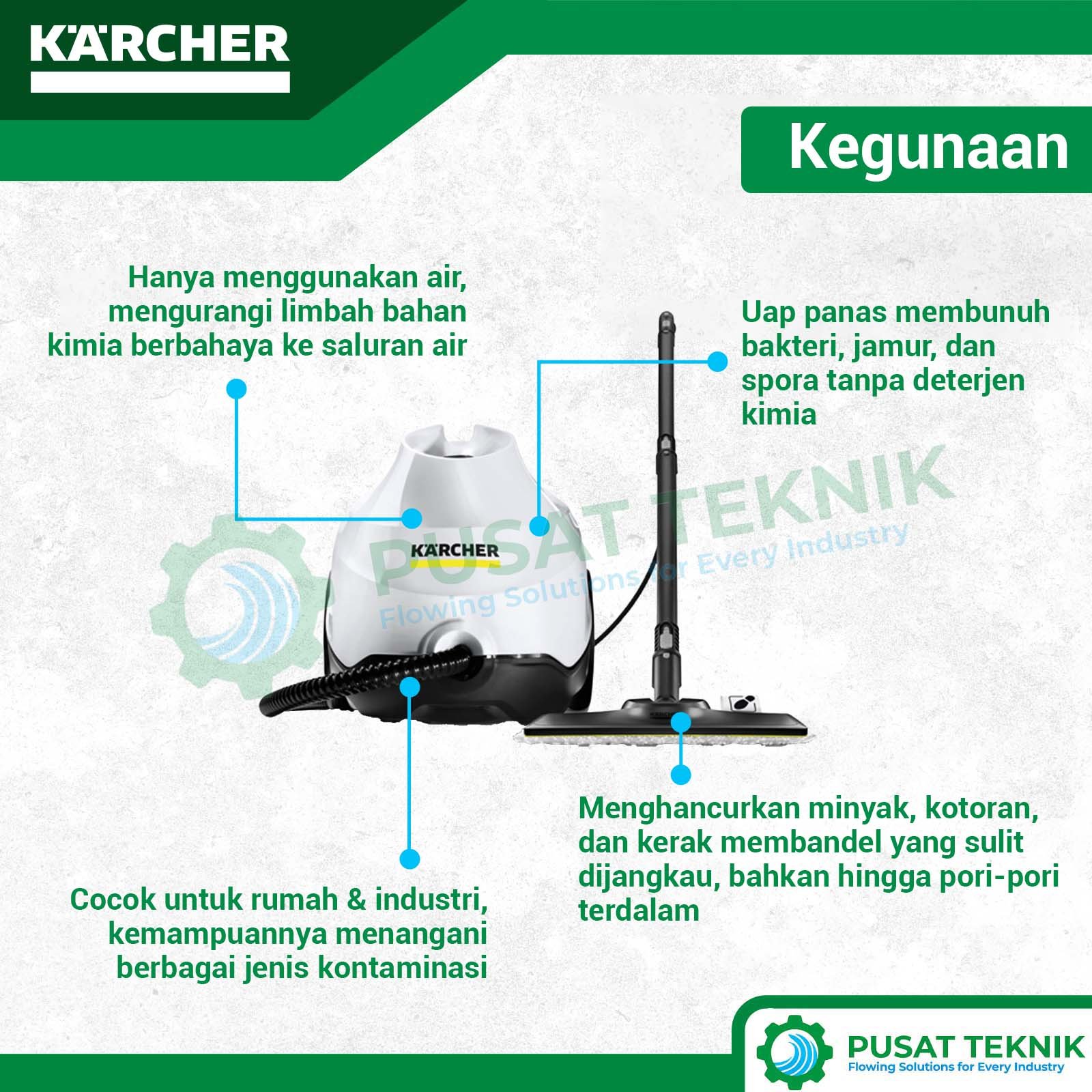 Meskipun bekerja dengan kekuatan uap yang sangat panas, pengoperasian alat ini tetap sangat aman bagi pengguna rumah tangga berkat adanya katup pengaman. Penggunaan steam cleaner ini memberikan keuntungan jangka panjang karena Anda tidak perlu lagi membeli deterjen atau cairan pembersih lantai yang korosif. Anda akan merasakan permukaan lantai yang lebih kesat dan bebas dari residu kimia yang biasanya meninggalkan jejak lengket setelah dipel. Segera miliki Karcher SC 3 EasyFix EU (White) untuk merasakan kemudahan menjaga kebersihan rumah dengan standar profesional yang cepat, aman, dan ramah lingkungan bagi seluruh anggota keluarga.
