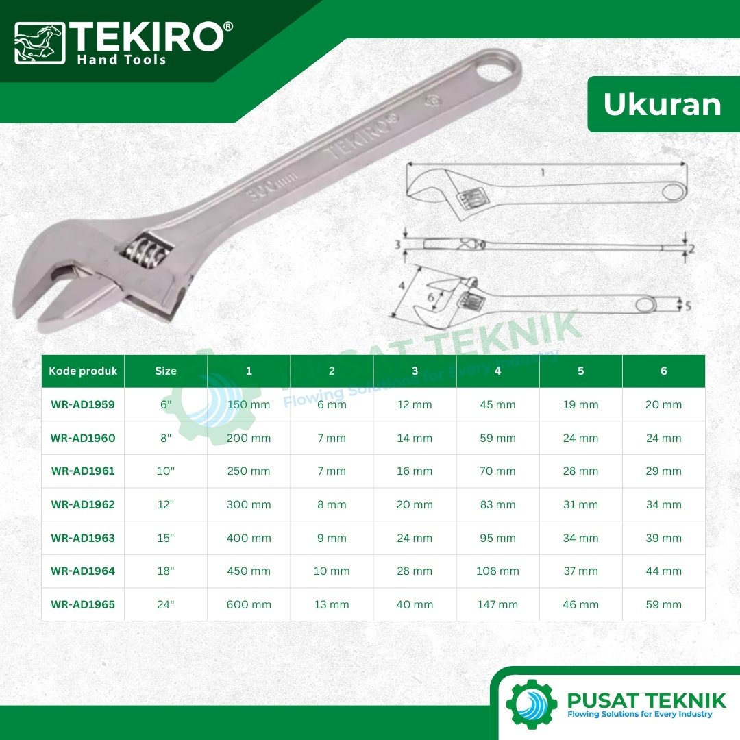 TEKIRO Kunci Inggris (18″ & 24″) adalah alat teknik berkualitas premium dengan standar JIS. Dirancang untuk penggunaan berat, kunci ini menawarkan bukaan rahang yang presisi, material anti-karat, dan daya tahan torsi tinggi. Sangat ideal bagi profesional di bidang industri dan konstruksi yang membutuhkan kunci inggris ukuran besar dengan keandalan maksimal.
