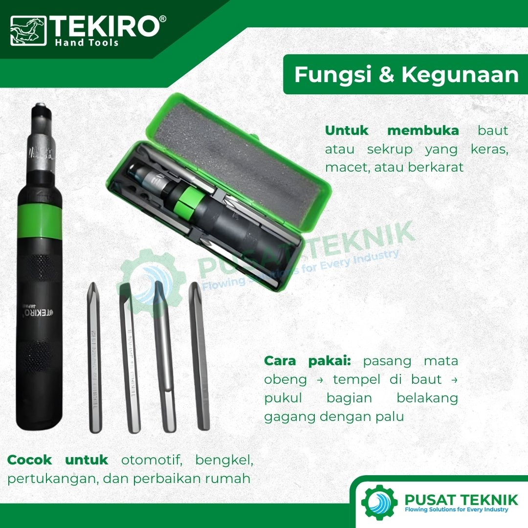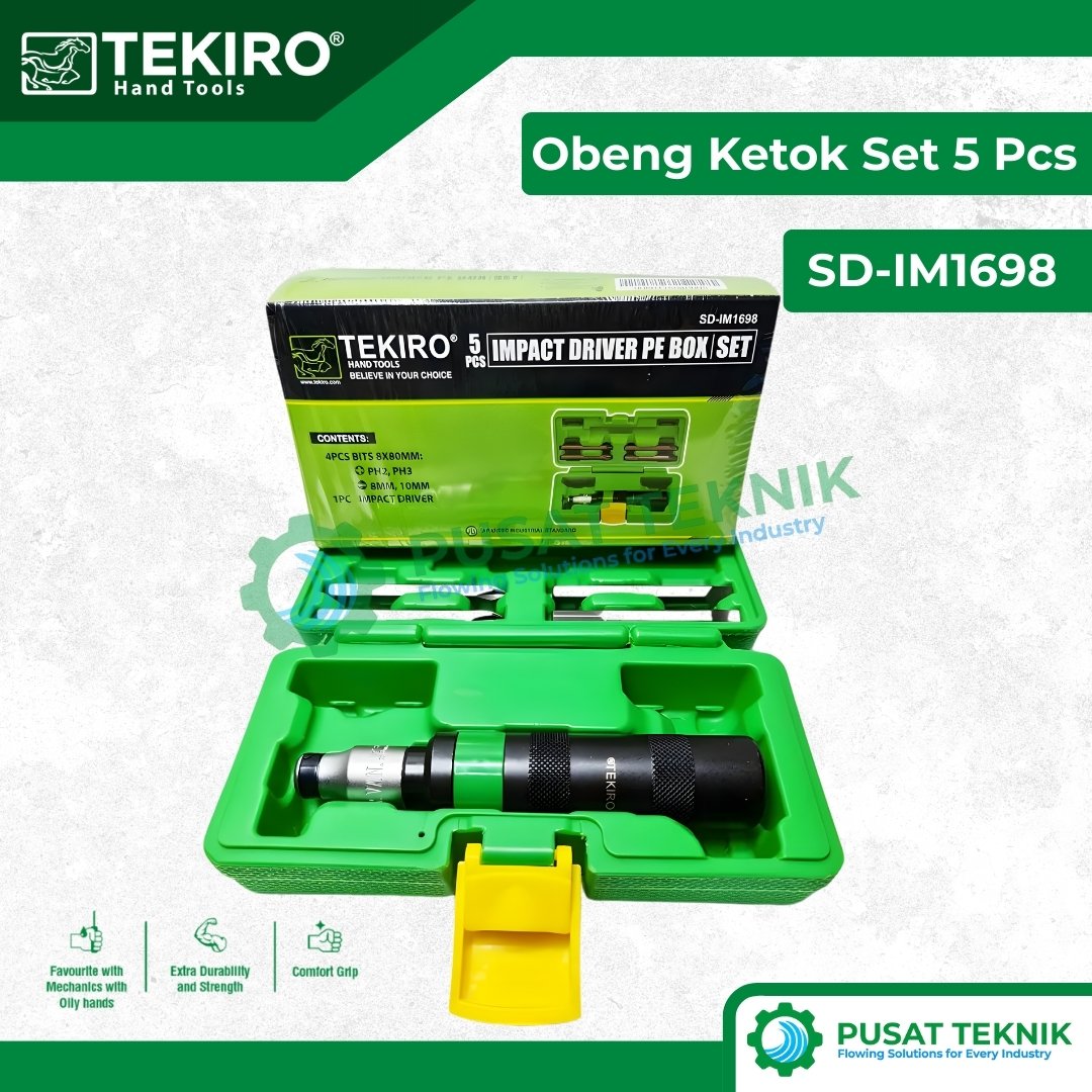 TEKIRO Obeng Ketok Set 5 Pcs (SD-IM1698) adalah alat andalan untuk melepas baut keras dan berkarat dengan sistem torsi gedor. Dilengkapi dengan 4 mata obeng baja berkualitas tinggi dan box penyimpanan praktis. Berstandar JIS, alat ini sangat kuat, tahan lama, dan menjadi perangkat wajib bagi setiap mekanik dan teknisi profesional.