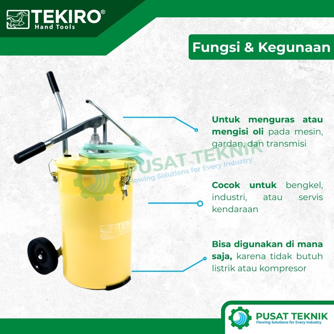 ⚠️ CATATAN TRANSAKSI PENTING: Produk ini merupakan tipe Pompa Manual. Mohon pastikan jenis oli yang Anda gunakan sesuai dengan spesifikasi pompa (tidak kami sarankan untuk cairan kimia keras atau bahan bakar yang korosif). Kami menjamin produk yang Anda terima adalah 100% Original TEKIRO.