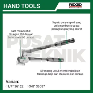 Pembengkok pipa berkualitas tinggi dari RIDGID, dirancang untuk membengkokkan tabung tembaga, baja, dan stainless anil dengan hasil presisi hingga sudut 180 derajat. Cocok untuk kebutuhan industri, plumbing, dan HVAC