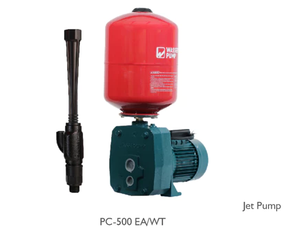 Wasser Jet Pump for Deep Well (Pompa Jet) PC-500 EA memberikan solusi pengambilan air dari sumur bor yang sangat dalam. Alat ini memiliki daya hisap ekstra kuat untuk memenuhi kebutuhan air gedung atau rumah besar. Mesin ini mengandalkan sistem otomatis yang sangat tangguh dan responsif.