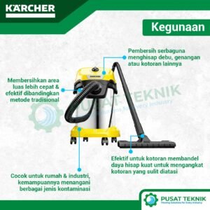 Keunggulan utama model “S” pada seri WD 3 ini terletak pada konstruksi wadah logamnya yang mampu menahan benturan saat penggunaan berat. Selain itu, Anda akan merasakan kemudahan manuver berkat empat roda putar yang sangat lincah mengikuti arah pergerakan Anda. Alat Kebersihan ini juga memiliki fitur sistem penguncian “Pull & Push” yang memudahkan Anda saat membuka atau mengosongkan tangki dengan cepat dan aman. Oleh karena itu, unit ini menjadi pilihan favorit bagi para penghobi otomotif untuk membersihkan interior mobil secara mendalam hingga ke sela-sela tersulit. Selanjutnya, desain handle yang ergonomis memungkinkan Anda membawa unit ini ke lantai atas dengan sangat nyaman.
