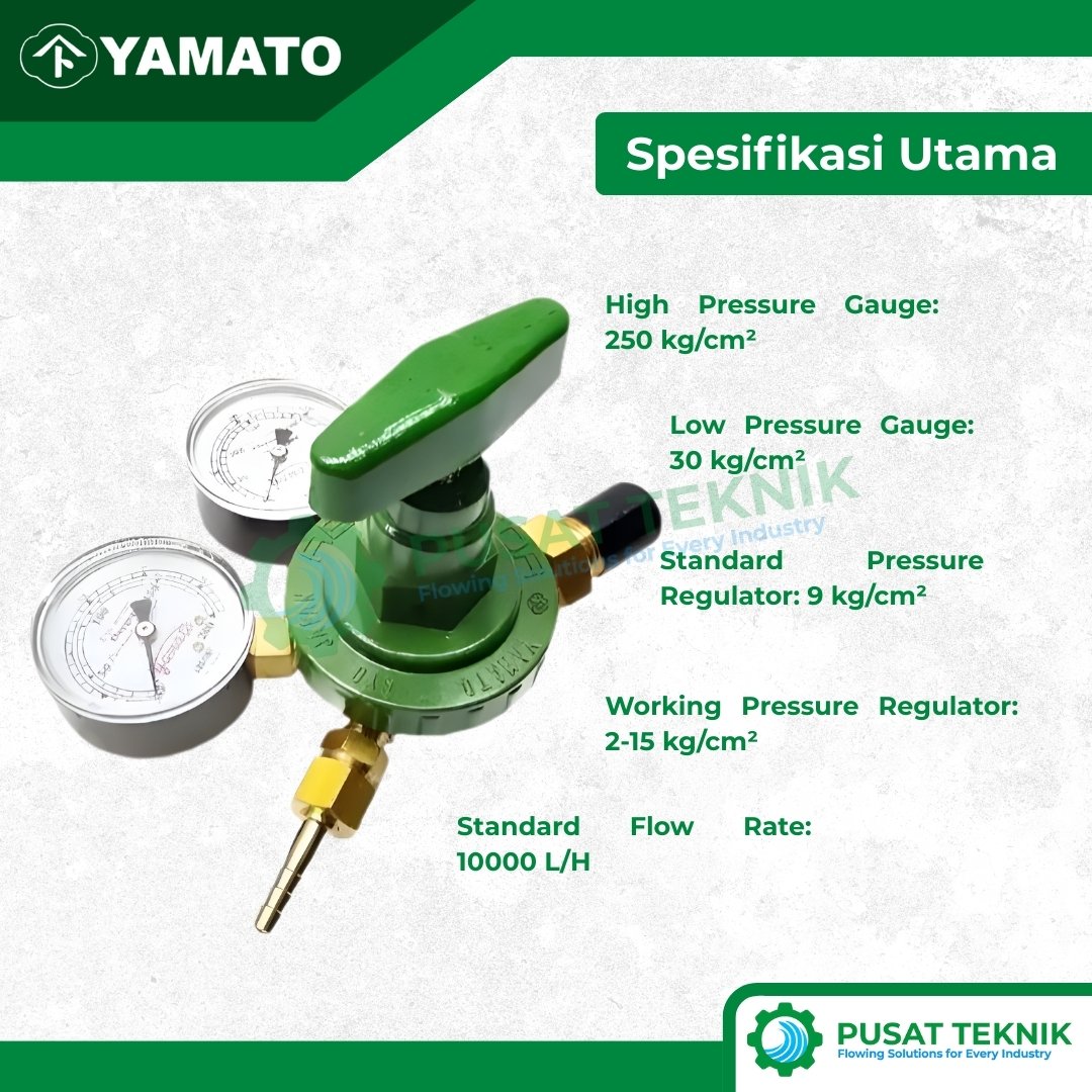 Regulator Oksigen Yamato Sangyo YR-70 adalah standar keamanan tertinggi untuk pengaturan gas oksigen. Dibuat di Jepang dengan kapasitas aliran besar 10.000 L/H dan tekanan input hingga 250 kg/cm², alat ini sangat stabil untuk kebutuhan industri berat maupun medis. Presisi, kokoh, dan terpercaya selama puluhan tahun di pasar global.